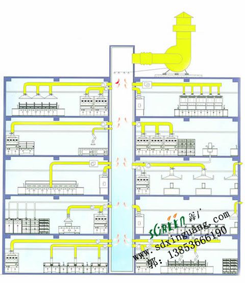 實(shí)驗(yàn)室通風(fēng)柜的排風(fēng)系統(tǒng)可分為集中式和分散式兩種,集中式是把一層樓或幾層樓的實(shí)驗(yàn)室通風(fēng)柜組成整體系統(tǒng),對于比較大的實(shí)驗(yàn)樓,可分為多個排風(fēng)系統(tǒng),它的特點(diǎn)是通風(fēng)設(shè)備少,降低成本。